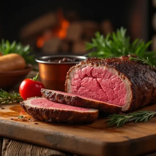 • Family Style: For casual gatherings, serve the sliced roast on a wooden board surrounded by small bowls of different sauces—the traditional reduction, horseradish cream, and a fruit chutney—allowing guests to customize their experience.